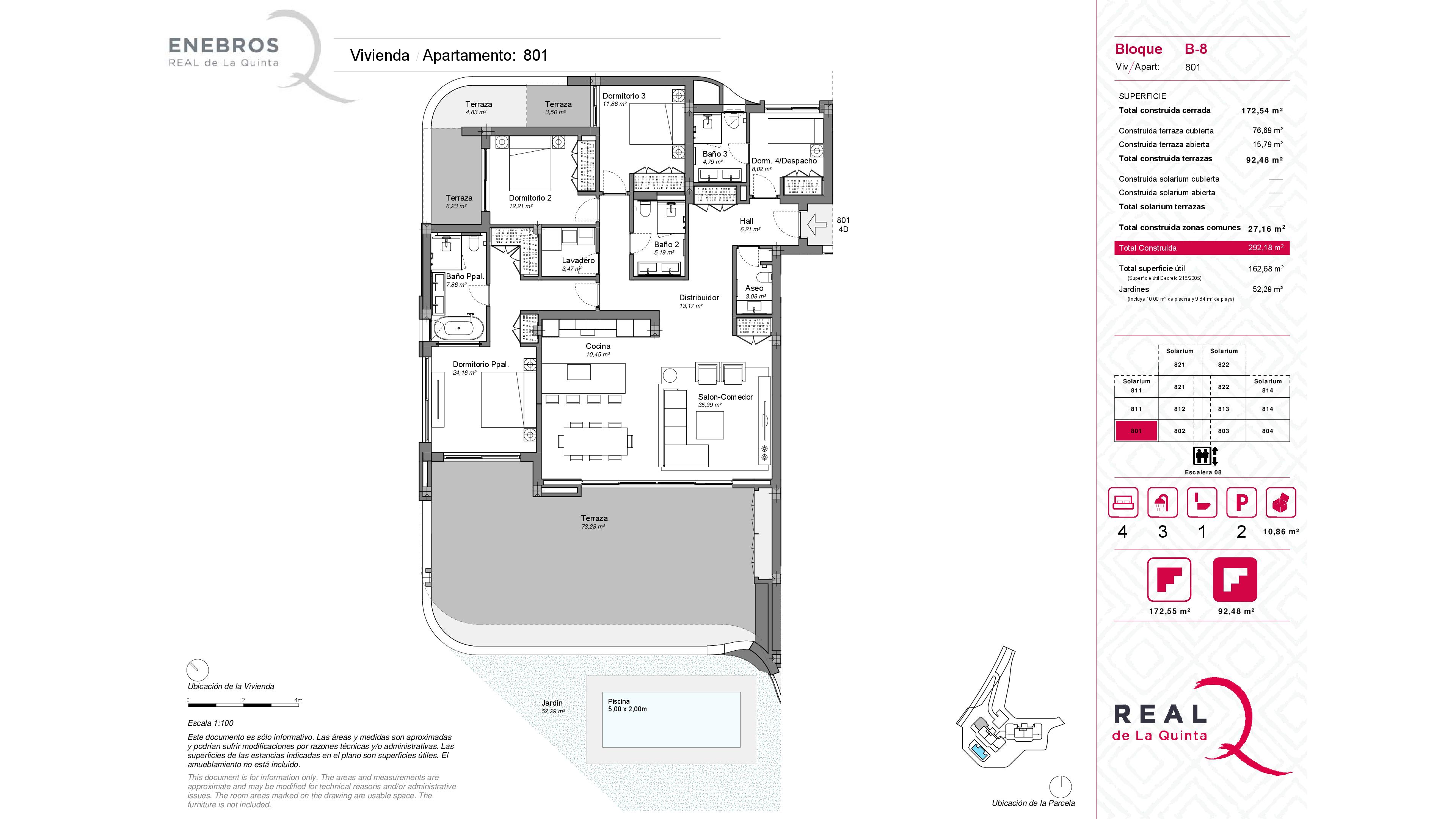 Direct from developerA stunning 4 bedroom ground floor apartment very spacious with private garden and private pool in the last proyect of Real de La Quinta Resort (Enebros) with panoramic sea views, golf course views & lake.